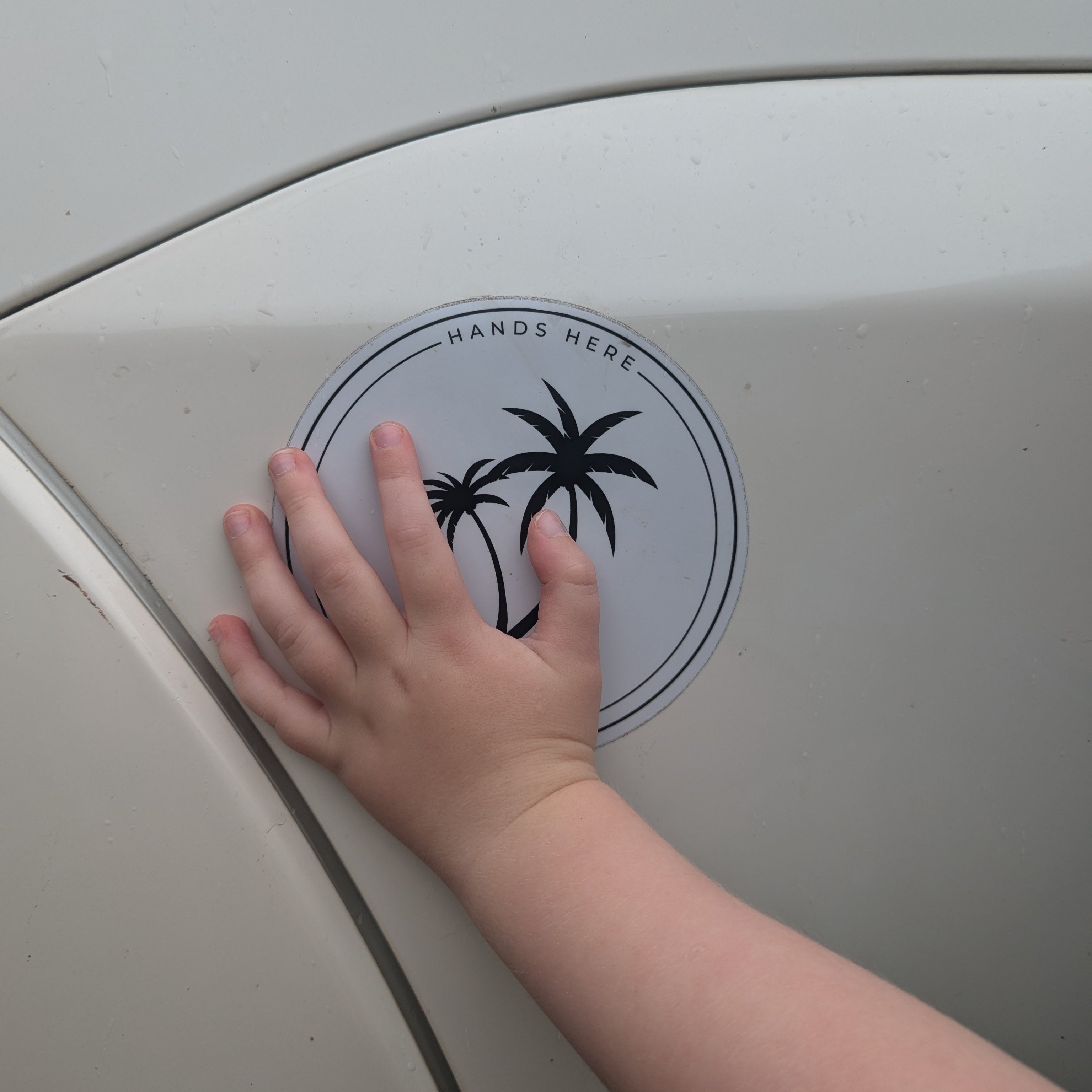 One for the car, one for the "just in case" — because calm outings start with smart tools like a Hands Here Decal & Emergency Tag.